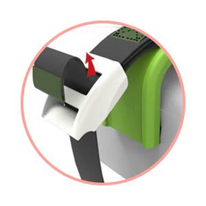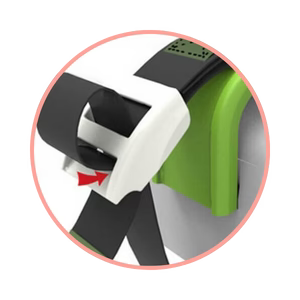 Muy fácil. Lo colocás una sola vez en el asiento y queda fijo. Cada vez que viajes, solo abrochás el cinturón y pasás la banda inferior por MamiSegura.